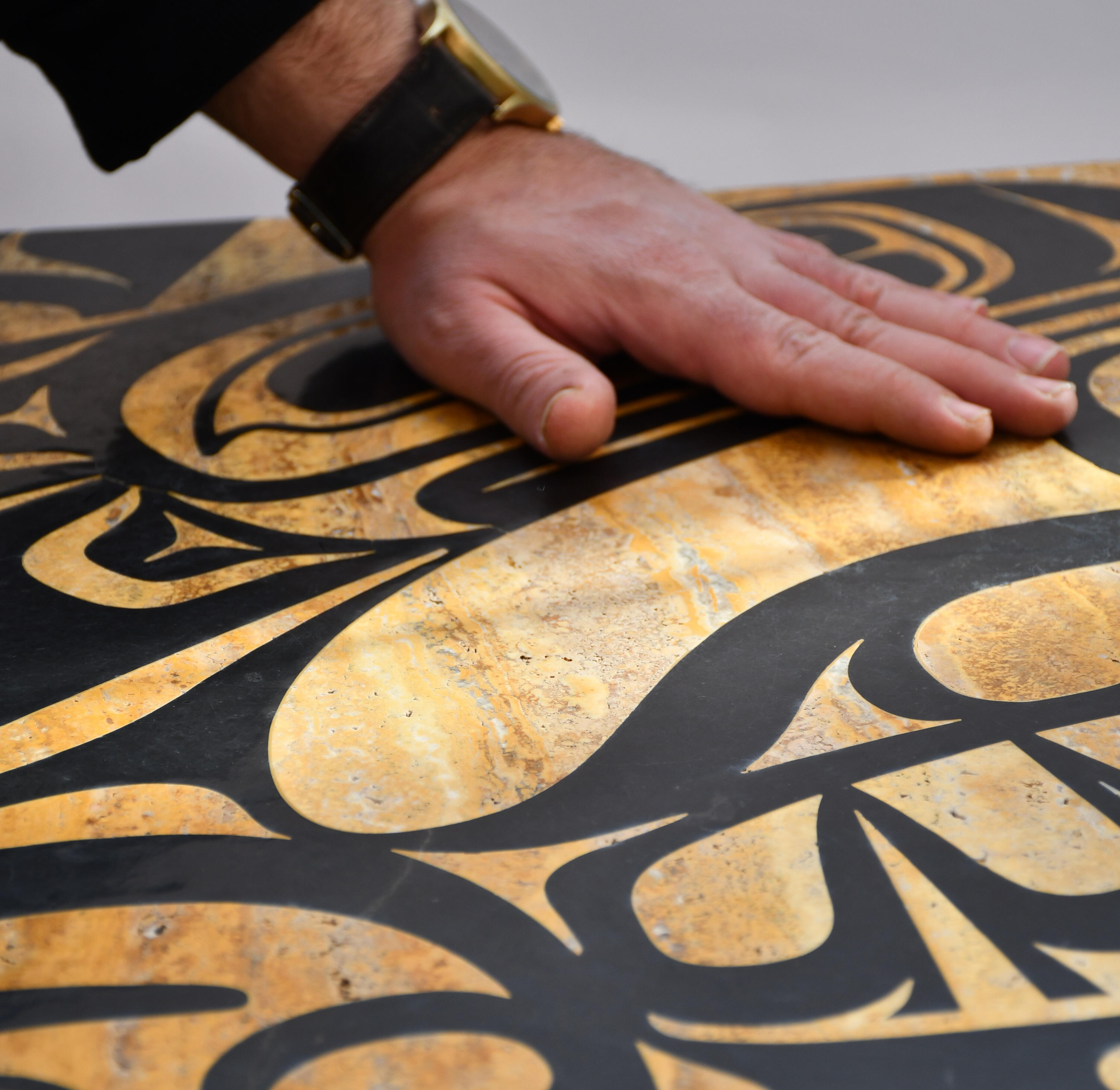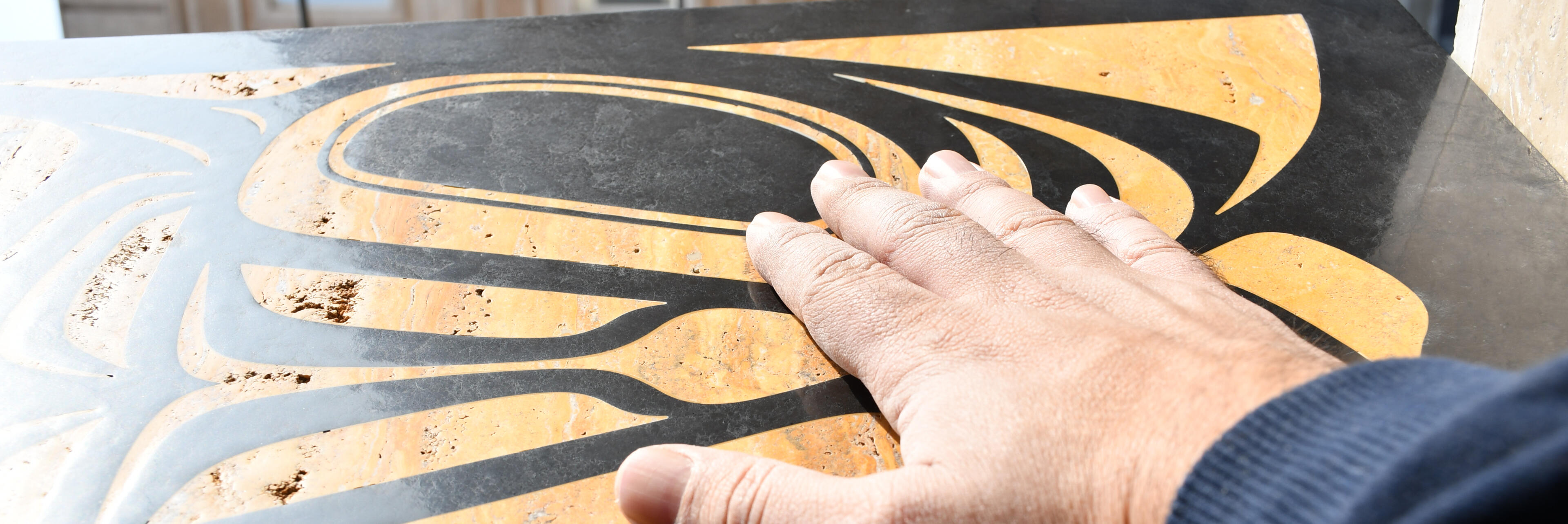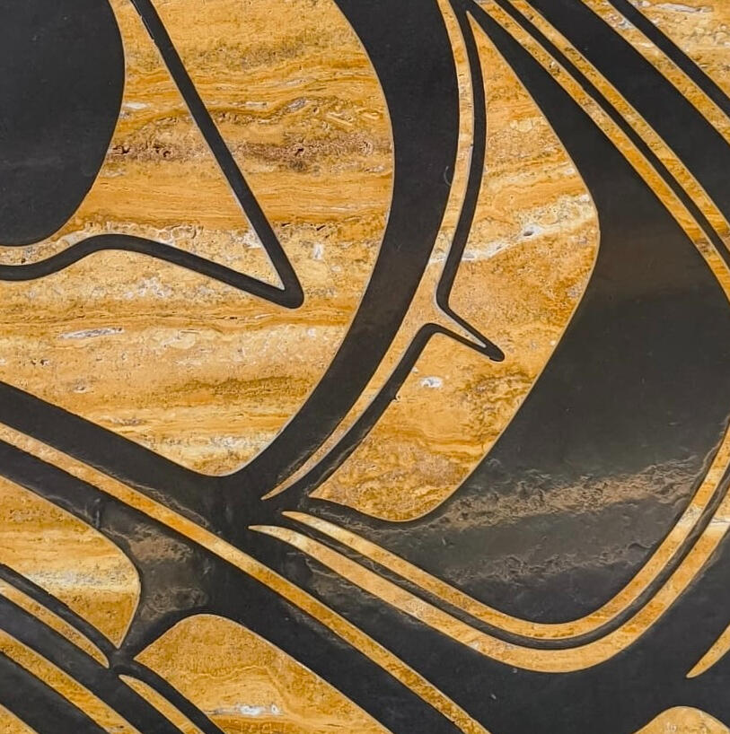 First Nations visual language has long been expressed in forms that time erodes. This series translates that language into stone — placing it between sculpture, architecture, and lasting record.Cross-cut golden travertine and black granite come together in a dialogue between land, material, and authorship. Each piece follows the original Indigenous form with precision. Nothing is reinterpreted.The work is made slowly. There is no urgency to finish. The result is quiet, durable, and built to endure — a form of presence that does not require explanation.Stone remembers. This series asks it to hold something specific.